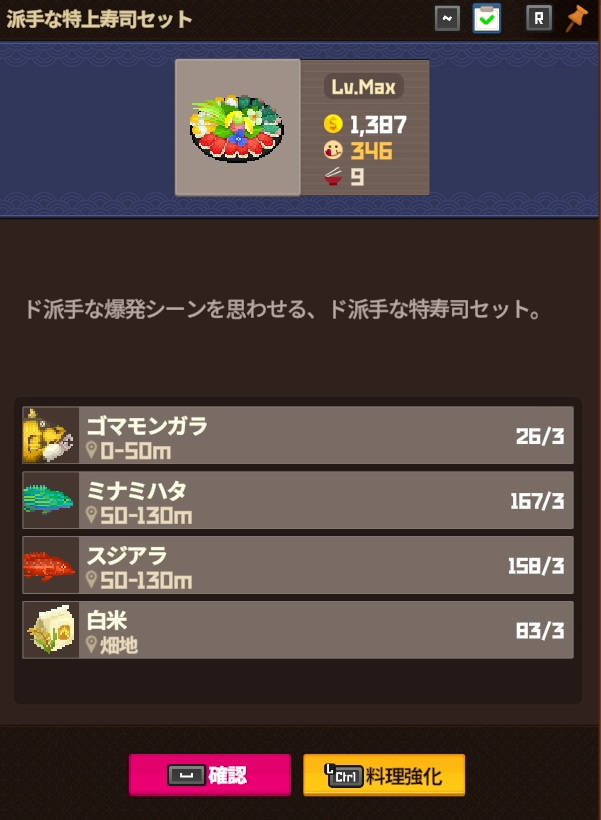 主力メニューを決めて、素材を狙い撃ち調達して、料理ランクをガンガン上げましょう!