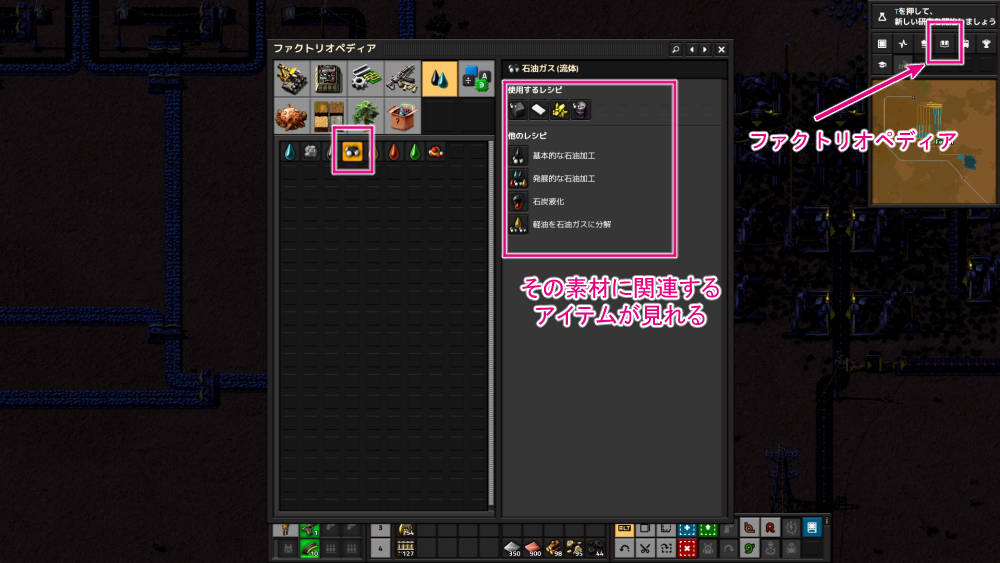 なので原油についてゲーム内辞典「ファクトリオペディア」で調べてみました。