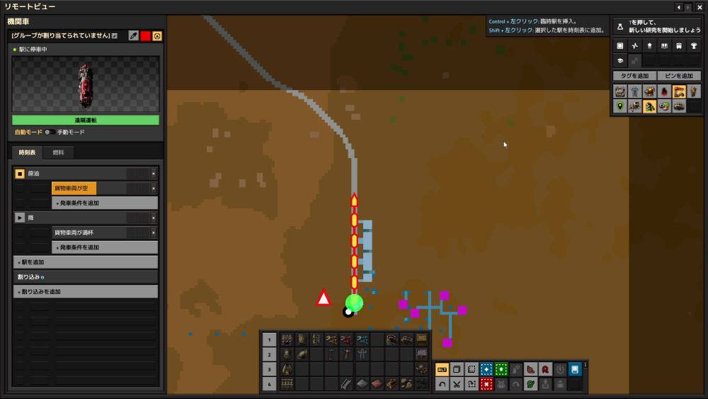 駅も作れたので、今度は原油を積み下ろす機構と、燃料を補充する機構を作っていきます。