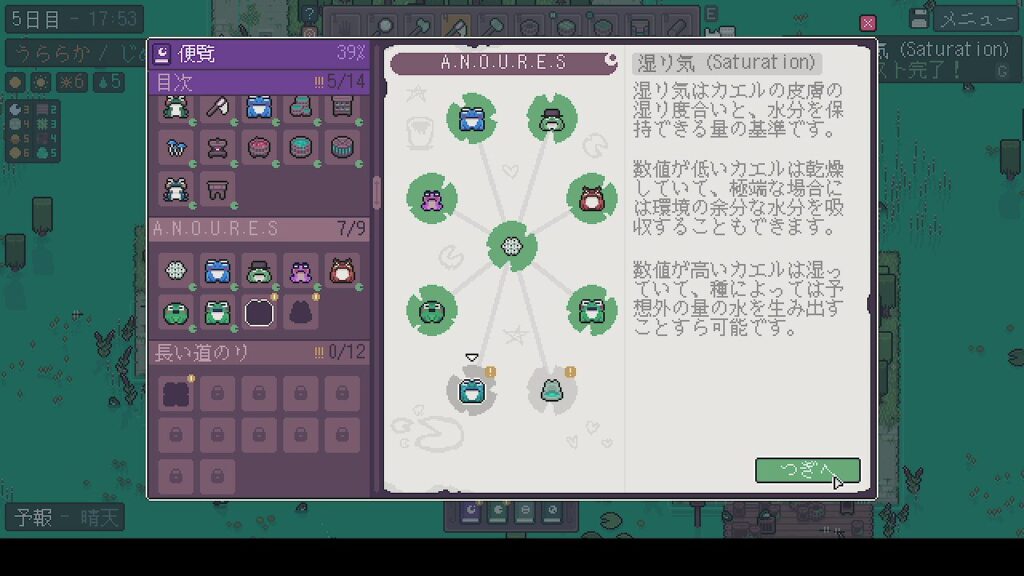 このゲームにおけるキノコは、カエルの品種改良に大きく役立つものらしく、